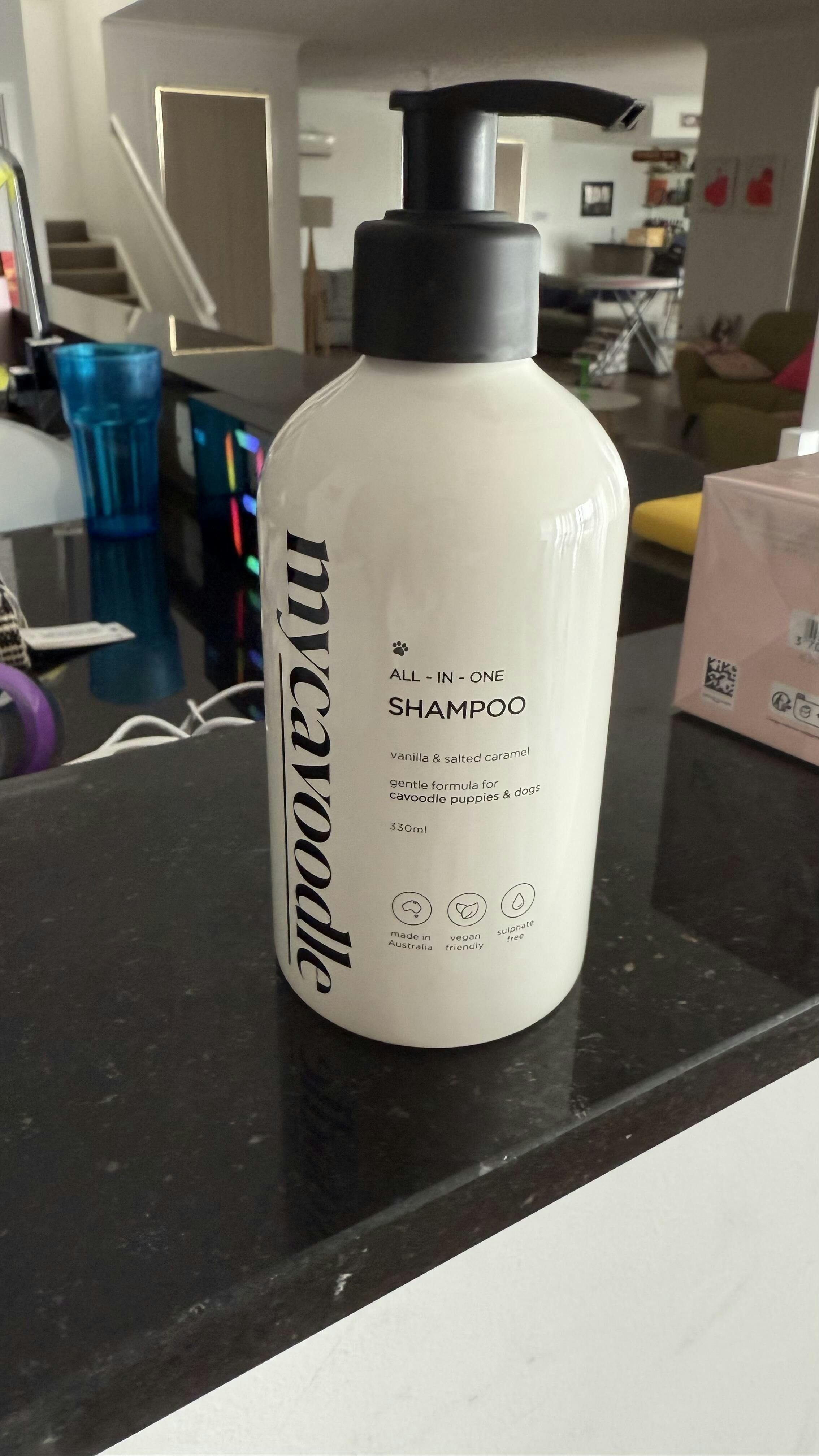 mycavoodle all-in-one shampoo is made with natural and gentle ingredients that cleans, moisturises, detangles, reduces odours & soothes itchy skin for cavoodle puppies and dogs. With aloe vera, vitamin e, almond oil and coconut oil in our shampoo your cavoodles coat will be left shiny after every wash for a salon-quality finish.