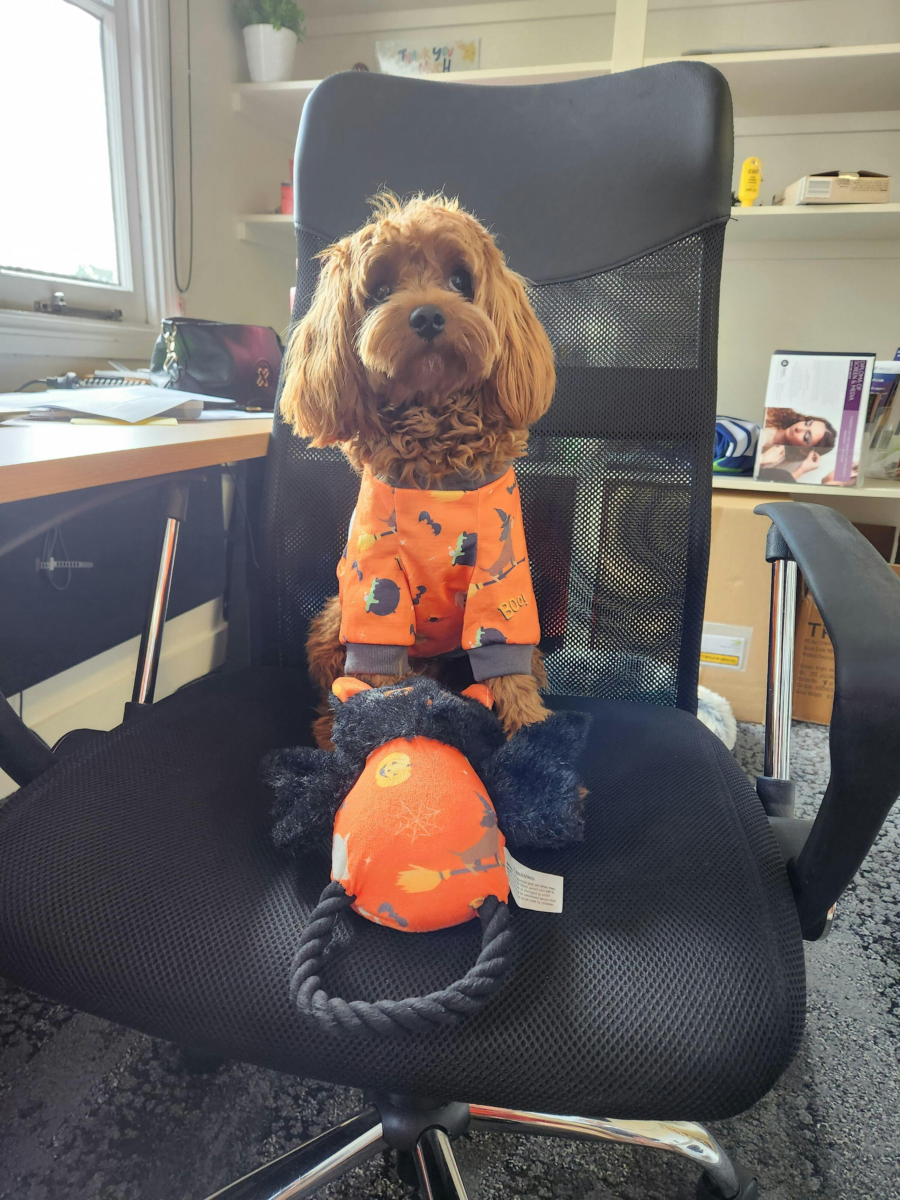 Just after bathing my Cavoodle I took her to work with me.